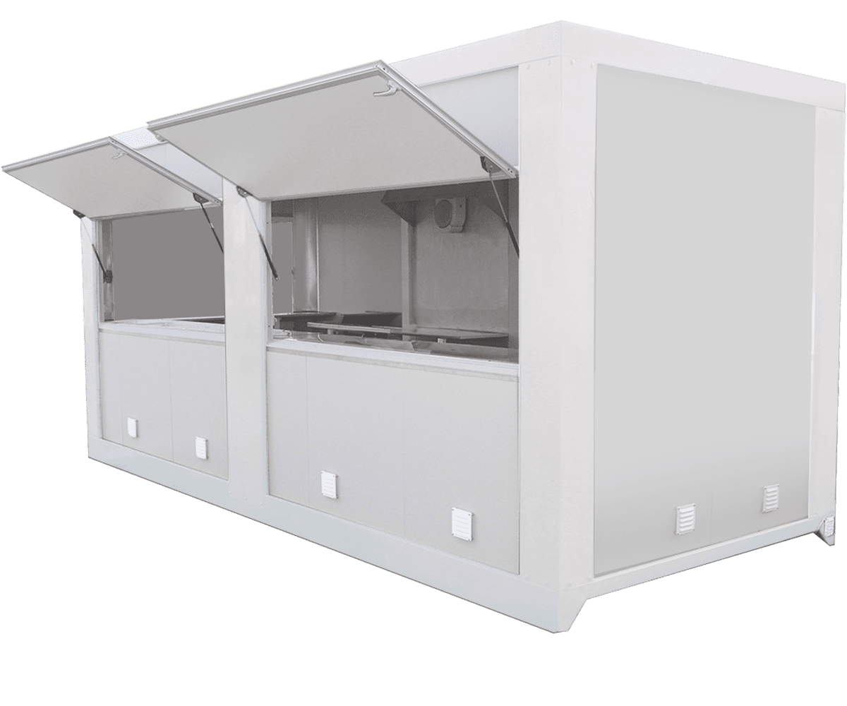 Com o aluguer do módulo bar simples – 6 m da Vendap, terá à sua disposição a solução ideal para oferecer uma nova mobilidade ao seu negócio. Com uma área total de 14,6 m² e duas portadas, o aluguer deste bar modular poderá ser a resposta de que precisa para o seu desafio na área da restauração.